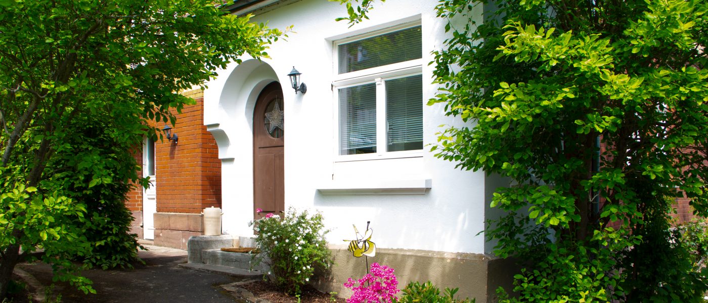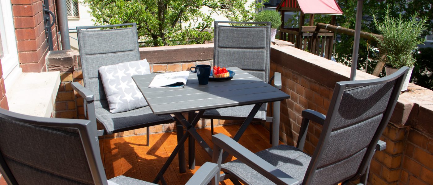 Der separate Eingang ist über zwei Stufen erreicht, die Wohnung selbst ist im Souterrain mit Blick in den Garten angesiedelt. Der wunderschöne Balkon, der von morgens bis nachmittags zur Sonne ausgerichtet ist, lädt ein zum Frühstück im Freien oder gesellige Sommerabende bei einem guten Glas Wein oder einer leckeren Limonade oder einem kühlen Bier. Alle Zimmer verfügen über Tageslicht-Fenster, somit ist es überall freundlich, hell.