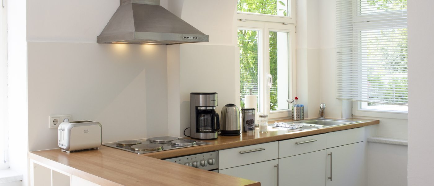 Die in 2019 renovierte Ferienwohnung „Hufelandstern“ in der 1901 gebauten, denkmalgeschützten Jugendstil-Villa „Volke“ macht ihrem Namen alle Ehre. Mit zwei Schlafzimmern, einer großen, gemütlichen Wohnküche, einem großzügigen Wohnzimmer mit komfortablem Schlafsofa und Schrankbett, sowie einem Bad mit Badewanne und einem Extra Gäste-WC bietet diese familienfreundliche, liebevoll eingerichtete Wohnung Platz für bis zu 7 Personen.