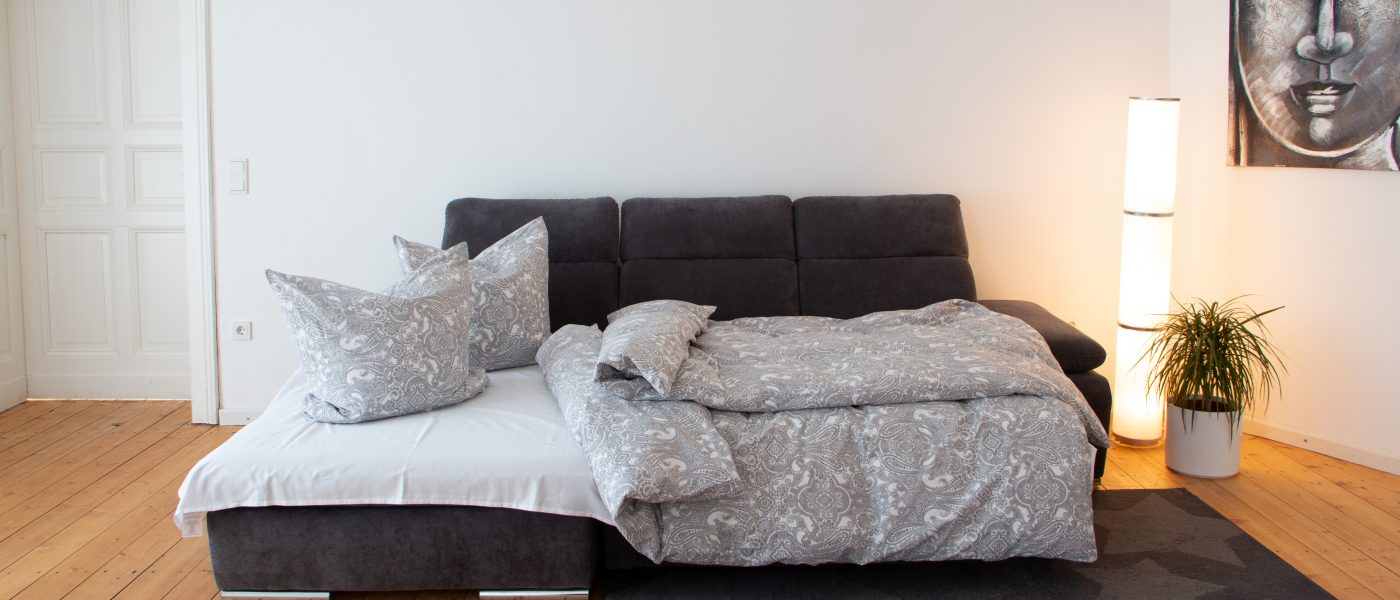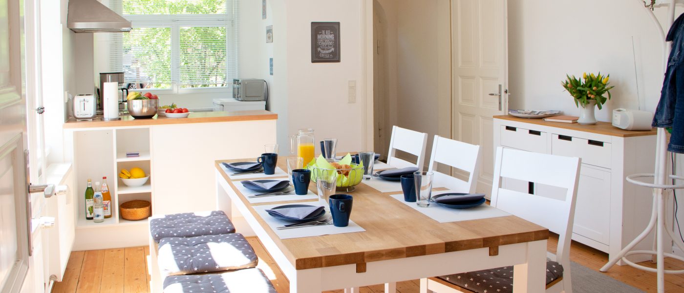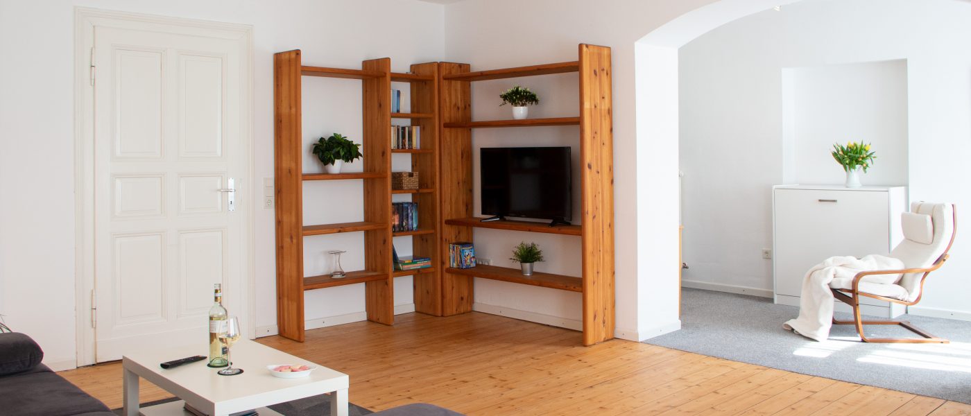 Auf 110 m² lebt der Charme des Jugendstils – allein schon durch die Original-Holzdielen und die ursprünglichen Innentüren, die aufwändig saniert wurden, hat diese Ferienwohnung den Anspruch an etwas ganz Besonderes.